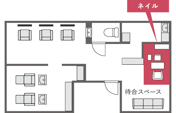 ネイルメニューをしていましたが、人がやめたのでネイルブースだけ空いていました。